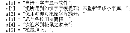 Here I take out matrix data of several dozens Chinese Character and save it in a new small library. It't will save space of harddrive and speed up software, because you don't have to search matrix data from the big library again.